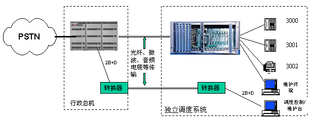 適用范圍:這種應(yīng)用適用于對(duì)電話系統(tǒng)安全性要求嚴(yán)格的場(chǎng)合,如電力系統(tǒng)行政交換機(jī)與調(diào)度交換機(jī)就可以以上述方式實(shí)現(xiàn)備份,從而實(shí)現(xiàn)行政或調(diào)度交換機(jī)某一臺(tái)不能工作時(shí),依然可以通過(guò)備份系統(tǒng)打電話。