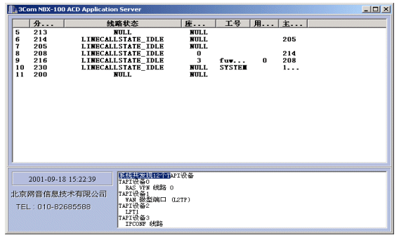 NBX呼叫中心的核心設(shè)備是3Com公司的NBX網(wǎng)絡(luò)交換機,NBX網(wǎng)絡(luò)交換機支持開放式電話開發(fā)平臺TAPI2.X,TAPI它是Microsoft電話技術(shù)應(yīng)用程序編程界面標(biāo)準(zhǔn),運用TAPI可以方便、高效地完成針對語音線路的控制開發(fā),從而完成自動語音應(yīng)答(IVR)、自動話路分配(ACD)、以及坐席接待、計費、錄音等需求。使用TAPI這種標(biāo)準(zhǔn)使得用戶可以集成第三方CTI程序以完成各種高級需求。