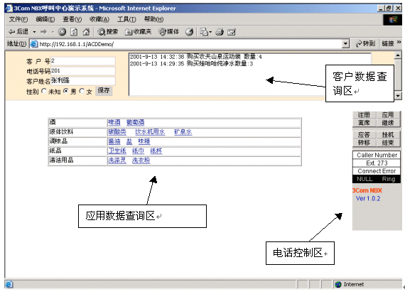 "無聲"一直是企業(yè)電子商務(wù)的最大遺憾,因為"無聲",許多消費者卻步了。怎樣把語音和Web在網(wǎng)絡(luò)上結(jié)合起來?NBX呼叫中心的語音數(shù)據(jù)兩網(wǎng)合一的結(jié)構(gòu),可以方便地讓W(xué)EB訪問用戶與呼叫中心坐席進行語音交流。消費者在使用Internet瀏覽時,點擊呼叫按鈕,就可以通過麥克風(fēng)與客服代表通話。并且網(wǎng)上來電與普通來電一樣,經(jīng)過交換及排隊處理,同樣支持來電資料彈出。對客戶來說,只需要一臺接入Internet的多媒體電腦和免費的客戶端軟件就可實現(xiàn)Web瀏覽和交談功能。這個功能不僅可以讓客戶獲得更好的售后服務(wù),在售前服務(wù)中也可發(fā)揮巨大效用。消費者在購買之前必須對產(chǎn)品有充分了解,在網(wǎng)站瀏覽中通過與客戶代表的交流增進產(chǎn)品了解,刺激其購買欲望。