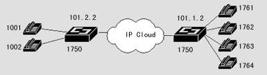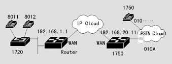 1720也可以通過(guò)器語(yǔ)音端口連接到PSTN,通過(guò)二次撥號(hào),使得兩地的PSTN用戶(hù)可以通過(guò)IP網(wǎng)絡(luò)互相通話(huà),而話(huà)費(fèi)只是市話(huà)的費(fèi)用。