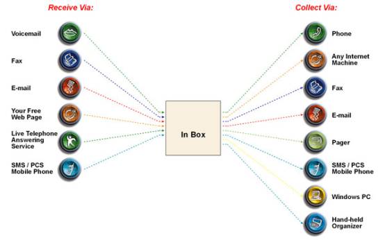 Ø 由固定/移動(dòng)電話運(yùn)營(yíng)商、ISPs 以及ASPs提供服務(wù)。服務(wù)包括單一信息通知到完全統(tǒng)一信息。用戶(hù)可將其所有類(lèi)型的信息存儲(chǔ)在一個(gè)信箱中并且通過(guò)電話或網(wǎng)絡(luò)瀏覽器獲取。