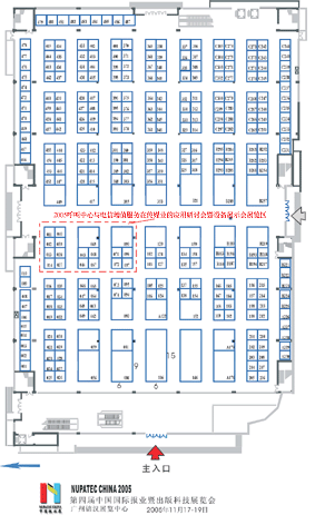 (圖中紅顏色邊框區(qū)為2005呼叫中心與電信增值服務(wù)在傳媒業(yè)的應(yīng)用研討會(huì)暨設(shè)備展示會(huì)展覽區(qū))