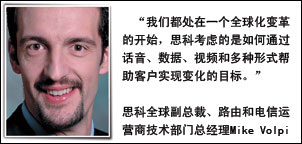 所有的運(yùn)營商都處在一個全球化變革的開始,思科的機(jī)會是通過話音、數(shù)據(jù)、視頻的多種形式幫助客戶實(shí)現(xiàn)變化的目標(biāo)。