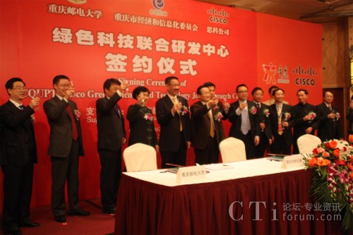 CTI論壇(ctiforum)2月3日消息(記者 潘婷):2月3日上午,思科公司與重慶郵電大學(xué)正式簽訂合作協(xié)議,共建“重慶郵電大學(xué)-思科綠色科技聯(lián)合研究實(shí)驗(yàn)室”!熬G色科技聯(lián)合研究實(shí)驗(yàn)室”的成立是思科履行其致力于推動(dòng)中國(guó)創(chuàng)新和可持續(xù)發(fā)展承諾的重要舉措。此次合作中雙方將共同推動(dòng)下一代互聯(lián)網(wǎng)、傳感器網(wǎng)絡(luò)以及綠色科技等領(lǐng)域的研發(fā),推進(jìn)應(yīng)用推廣和產(chǎn)業(yè)化發(fā)展,實(shí)現(xiàn)產(chǎn)學(xué)研一體化,幫助和支持重慶本土企業(yè)提高綠色科技創(chuàng)新的素質(zhì)和能力,進(jìn)而支持中國(guó)發(fā)展綠色經(jīng)濟(jì)、節(jié)能減排的長(zhǎng)期戰(zhàn)略。