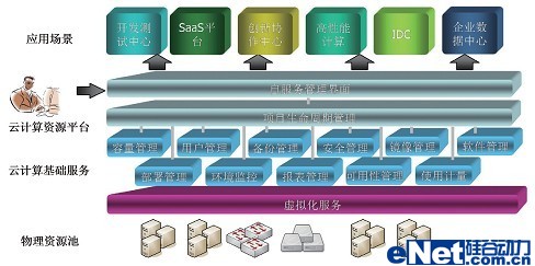 該解決方案可以對(duì)企業(yè)現(xiàn)有的基礎(chǔ)架構(gòu)進(jìn)行整合,通過(guò)虛擬化技術(shù)和自動(dòng)化技術(shù),構(gòu)建企業(yè)自己擁有的云計(jì)算中心,實(shí)現(xiàn)企業(yè)硬件資源和軟件資源的統(tǒng)一管理、統(tǒng)一分配、統(tǒng)一部署、統(tǒng)一監(jiān)控和統(tǒng)一備份,打破應(yīng)用對(duì)資源的獨(dú)占,從而幫助企業(yè)實(shí)現(xiàn)云計(jì)算理念。