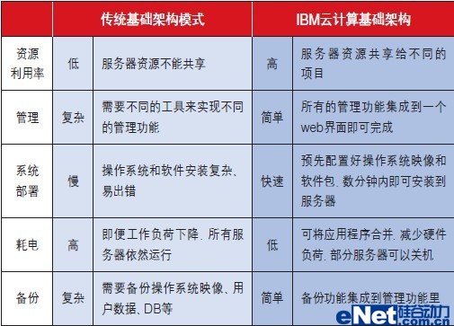 傳統(tǒng)IDC主要提供帶寬租用和機(jī)位租用服務(wù),服務(wù)種類(lèi)單一,競(jìng)爭(zhēng)激烈。云計(jì)算IDC借助IBM云計(jì)算管理平臺(tái),可以提供更多種類(lèi)的增值服務(wù),并提升利潤(rùn)率。增值服務(wù)包括: 云計(jì)算虛擬基礎(chǔ)架構(gòu)服務(wù)、SaaS(軟件即服務(wù))軟件訂購(gòu)服務(wù)等等。云計(jì)算IDC同時(shí)能夠簡(jiǎn)化IDC的管理,并迅速響應(yīng)客戶的需求。