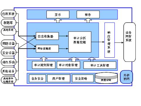 圍繞《薩班斯法案》第404條款的基本要求,結(jié)合運營商的業(yè)務(wù)支撐系統(tǒng)運維特點,面向業(yè)務(wù)系統(tǒng)的安全審計系統(tǒng)一般應具備以下功能: