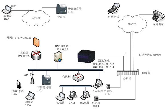 NTX IP融合通信電話總機網(wǎng)絡(luò)架構(gòu)