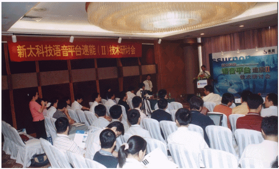 7月23日,新太科技在廣州花園酒店舉行"語(yǔ)音平臺(tái)速能II技術(shù)研討會(huì)"。新太科技執(zhí)行總裁梁平、副總裁何健明,開發(fā)中心副經(jīng)理張少文,營(yíng)銷中心國(guó)際業(yè)務(wù)部副總經(jīng)理馬任遠(yuǎn)、產(chǎn)品經(jīng)理黃偉,新太科技合作伙伴Intel公司通訊產(chǎn)品業(yè)務(wù)部戰(zhàn)略客戶經(jīng)理林競(jìng)宇,新太語(yǔ)音平臺(tái)速能產(chǎn)品核心代理商--廣州納特威科技公司總經(jīng)理黃淡輝,渠道總代理商--深圳意科特實(shí)業(yè)有限公司總經(jīng)理李面換等到會(huì)并作主題發(fā)言!吨袊(guó)計(jì)算機(jī)報(bào)》、《計(jì)算機(jī)世界》、《SP計(jì)算機(jī)產(chǎn)品與流通》、IT168共四家專業(yè)媒體記者到會(huì)采訪。