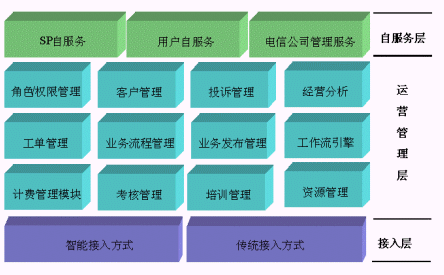 SP統(tǒng)一管理系統(tǒng)層次清晰,遵循系統(tǒng)設(shè)計(jì)思路,以實(shí)現(xiàn)SP統(tǒng)一接入、統(tǒng)一管理為最終建設(shè)目標(biāo)。在以下接入層的功能介紹部份,我們了解到如何將SP納入到運(yùn)營(yíng)商的網(wǎng)維體系的技術(shù)實(shí)現(xiàn)方案,適應(yīng)于將社會(huì)上所有SP接入平臺(tái)接受管理;運(yùn)營(yíng)管理層為各類(lèi)SP提供統(tǒng)一的后臺(tái)管理功能;自服務(wù)層其實(shí)也是運(yùn)營(yíng)管理層中的內(nèi)容,負(fù)責(zé)提供給運(yùn)營(yíng)商、SP和用戶(hù)使用及管理業(yè)務(wù)的接口界面,本文中我們獨(dú)立在一個(gè)功能層面加以介紹,為的是有針對(duì)性地對(duì)系統(tǒng)前后臺(tái)管理功能加以介紹。