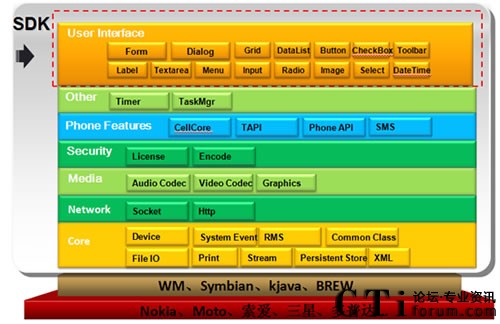 據新太科技內部相關人員介紹,mWAY的技術架構,一方面可以支持電信網絡各種各樣的接入,保證和運營商已有的網絡的互聯互通,同時也支持和移動互聯網手機之間的連接,支持相關音頻、視頻的呼叫、傳送。業(yè)務接口可以給第三方應對研發(fā)需求,手機終端有相關的引擎,滿足手機終端的業(yè)務研發(fā)的需求,這部分有一個手機客戶端軟件,是一個移動性的引擎。這個引擎移植在手機終端客戶端上,給上層提供統(tǒng)一的解析開放系統(tǒng)。