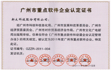 新太科技連續(xù)4年蟬聯(lián)“廣州市重點(diǎn)軟件企業(yè)”稱號