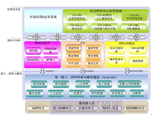欣方呼叫中心是基于下一代融合網(wǎng)絡(luò)技術(shù)和架構(gòu)的新型呼叫中心平臺,面向PSTN(固定電話網(wǎng))、PLMN(移動電話網(wǎng))、3G窄帶視頻和NGN/IMS(軟交換)多種網(wǎng)絡(luò)接入提供多媒體聯(lián)絡(luò)中心系統(tǒng),支持話務(wù)員與客戶之間語音、視頻、傳真、消息等多種通訊方式。系統(tǒng)采用下一代網(wǎng)絡(luò)融合架構(gòu),呼叫平臺采用SIP信令方式搭建,信令與媒體分離、平臺與網(wǎng)絡(luò)無關(guān),支持多種異構(gòu)網(wǎng)絡(luò)環(huán)境接入,支持多種媒體統(tǒng)一排隊與路由。