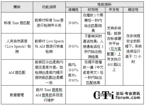 圖中,Tone音匹配采用模式匹配方法,可以實現(xiàn)對振鈴音,忙音,空號,不可達音等100多種標準提示音的識別。AM(Answering Machine)音匹配主要負責識別傳真機、自動答錄機等機器語音,同樣采用模式匹配方法,將收到的語音與標準樣本庫進行比對。人類自然語音檢測的功能主要通過人真實聲音的檢測,來判斷是否需要進行語音匹配。