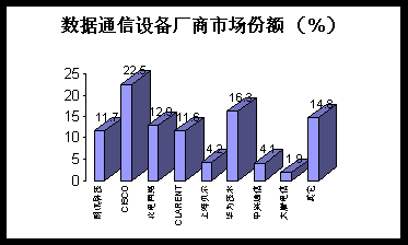 。3)市場發(fā)展及預(yù)測: 2001年數(shù)據(jù)通信設(shè)備市場仍會(huì)保持高速增長,在網(wǎng)絡(luò)交換平臺(tái)、接入服務(wù)器、路由器等高端產(chǎn)品領(lǐng)域,非外資通信設(shè)備廠商有望繼續(xù)擴(kuò)大領(lǐng)地,外資廠商如CISICO、IBM、HP等預(yù)計(jì)會(huì)下延其產(chǎn)品線不斷向中低端產(chǎn)品滲透。市場競爭的加劇可能促使更多的企業(yè)進(jìn)行戰(zhàn)略性合作。網(wǎng)絡(luò)運(yùn)營業(yè)務(wù)準(zhǔn)入門檻的降低將再度加劇運(yùn)營商間的競爭,由此會(huì)進(jìn)一步拉動(dòng)數(shù)據(jù)通信設(shè)備市場的需求、促成設(shè)備廠商與運(yùn)營商在多層面上合作。