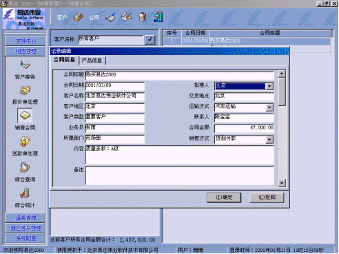 附:有關易達 2000 CRM軟件界面: