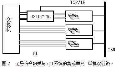 。。7號信令網(wǎng)關(guān)支持多條SS7信令鏈路。7號信令網(wǎng)關(guān)能夠檢測出攜帶SS7信令消息的時(shí)隙,加以處理,通過TCP/IP輸出到LAN上。相似地,7號信令網(wǎng)關(guān)從TCP/IP