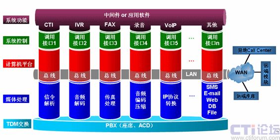 傳統(tǒng)的媒體處理模塊都工作在計(jì)算機(jī)總線上,而新架構(gòu)的通用媒體處理模塊則工作在通用的、標(biāo)準(zhǔn)的TCP/IP網(wǎng)絡(luò)上,一方面增加了系統(tǒng)帶寬,提高了媒體處理效率,另一方面實(shí)現(xiàn)了呼叫中心的分布式運(yùn)營(yíng)、跨網(wǎng)運(yùn)營(yíng)以及負(fù)擔(dān)均衡。