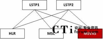 MSVAS平臺可以通過七號信令網(wǎng)與移動核心網(wǎng)中的各個(gè)網(wǎng)元進(jìn)行對接,如與七號信令網(wǎng)中的LSTP進(jìn)行對接,通過ISUP、TUP以及MAP對核心網(wǎng)中HLR、MSC、短信中心等網(wǎng)元進(jìn)行訪問,實(shí)現(xiàn)移動管理(位置查詢)、呼叫處理(主要是獲取路由信息)、業(yè)務(wù)登記、短消息業(yè)務(wù)等功能,其連接方式如下圖所示: