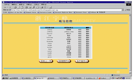 帳號(hào)系統(tǒng)主要是為適應(yīng)一個(gè)分銷商內(nèi)部會(huì)有多個(gè)不同等級(jí)的人使用這個(gè)系統(tǒng)。對(duì)于分銷商而言,它可以建立多個(gè)帳號(hào),并為每個(gè)帳號(hào)分配不同的權(quán)限,以及每個(gè)帳號(hào)可以對(duì)應(yīng)管理不同下屬企業(yè)(參看圖5和圖6)。還可以為不同的帳號(hào)提供不同的進(jìn)入頁(yè)面,使得用戶使用更加方便。