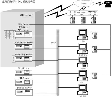 系統(tǒng)主要由座席卡、數(shù)據(jù)庫服務(wù)器等硬件設(shè)備和系統(tǒng)應(yīng)用軟件構(gòu)成。它以電話服務(wù)為主要方式、結(jié)合對計算機信息系統(tǒng)的資料數(shù)據(jù)的統(tǒng)計、分析、運用,為客戶提供全方位的服務(wù)。