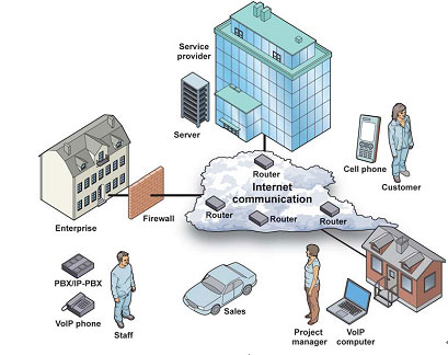 企業(yè)網(wǎng)絡(luò)融合是在互聯(lián)網(wǎng), 固定網(wǎng), 移動網(wǎng)三網(wǎng)合一的基礎(chǔ)上, 由企業(yè)服務(wù)提供商提供的可以控制和管理的融合通信平臺, 將語音、視頻、圖片、文件傳送等功能統(tǒng)一實現(xiàn)。企業(yè)員工可在不同地點, 通過不同終端接入此平臺,內(nèi)部語音通信可以直接通過企業(yè)內(nèi)部IP網(wǎng)絡(luò)進行,國內(nèi)外分支機構(gòu)間語音通信,只需要支付IP網(wǎng)絡(luò)接入的費用,不但提供了靈活高效的通信手段, 也節(jié)省了原本高額的通信費用。