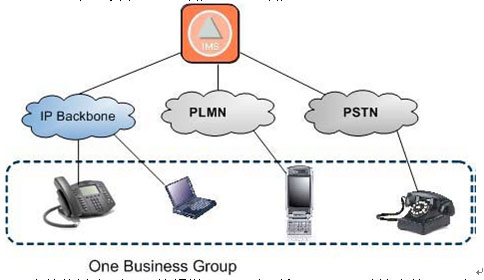 與終端的類型和接入方式無關(guān)。企業(yè)或集團用戶的成員可以使用不同類型的終端, 通過不同的接入網(wǎng)絡(luò)接入到IMS。在IMS的控制下完成多媒體業(yè)務(wù)的通信過程,實現(xiàn)虛擬專用網(wǎng)絡(luò)的應(yīng)用。