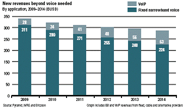 Pyramid Research 公司調(diào)查發(fā)現(xiàn),電信業(yè)務(wù)市場(chǎng)在 2009 年的產(chǎn)值達(dá) 1.4 萬億美元,僅比上一年增加了