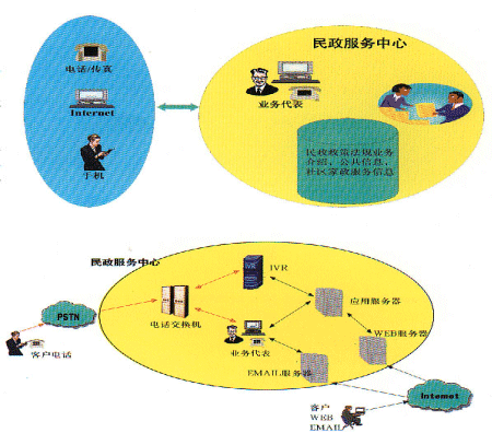 民政社區(qū)服務(wù)中心利用CTI技術(shù)、網(wǎng)絡(luò)技術(shù)、數(shù)據(jù)庫(kù)技術(shù)、WEB技術(shù)及多種接入方式:電話、呼叫器、傳真、互聯(lián)網(wǎng)、移動(dòng)互聯(lián)網(wǎng)、手機(jī)等,為廣大居民提供便捷、優(yōu)質(zhì)的社區(qū)服務(wù)。