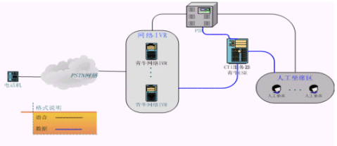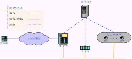 青牛IVR集群方案將原來放在PBX后面的IVR"前移",PBX的LINK只有和坐席相關(guān)的信息,大量的和IVR相關(guān)的呼叫信息被剝離出去,由青牛網(wǎng)絡(luò)IVR直接自行處理。根據(jù)統(tǒng)計,自動業(yè)務(wù)的呼叫量在整個客服中心呼叫量中占大多數(shù),當(dāng)呼叫量越大的時候,該方案的優(yōu)勢就越明顯。