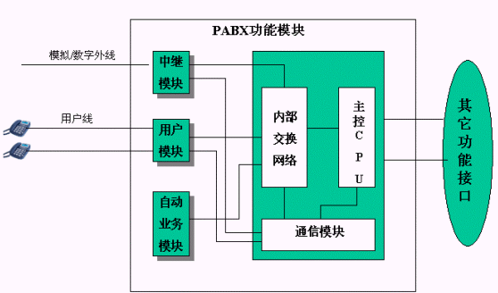 ·輔助功能模塊(如VoIP、自動(dòng)傳真、語(yǔ)音信箱、電話會(huì)議、郵件服務(wù)器、Web服務(wù)器等)和開(kāi)發(fā)接口等