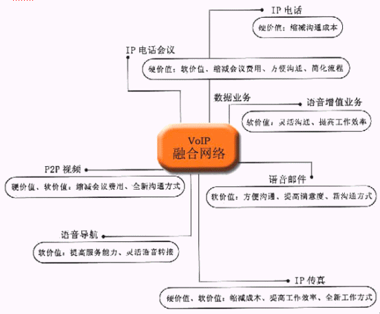 VoIP融合網(wǎng)絡(luò)應(yīng)用價值圖: