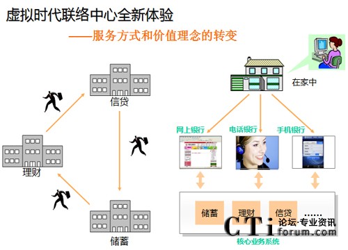 所以,英立訊提出的 “感•動中心”實際代表了未來聯(lián)絡(luò)中心的發(fā)展方向,那就是:聯(lián)絡(luò)中心的全媒體溝通方式代表了新一代“人機交互”的通訊模式,將逐步替代“人人交互”的傳統(tǒng)柜員模式。以金融行業(yè)為例,融合電話銀行和網(wǎng)上銀行的電子銀行業(yè)務(wù),正在替代越來越多的柜臺業(yè)務(wù),80%以上的柜臺業(yè)務(wù)通過電話或網(wǎng)絡(luò)都能辦妥,同時銀行可以通過電話外呼方式進行產(chǎn)品銷售的規(guī)模連年成倍增長,電話渠道服務(wù)正成為商業(yè)銀行業(yè)績上升的新增長點。