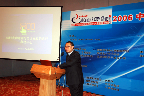 2006年4月3日至5日,2006中國呼叫中心與客戶關(guān)系管理大會在北京國際會議中心隆重召開,以下是飛翱商務(wù)咨詢有限公司主席及首席執(zhí)行官匯卓科技顧問黃有權(quán)先生專題演講實(shí)錄: 原來大會希望我用一個比較技術(shù)性的角度看作為一個很好的呼叫中心,能發(fā)揮呼叫中心應(yīng)該有的水平,參加大會的朋友不一定技術(shù)背景強(qiáng)的,有可能來自IT背景,有可能是傾向于使用者,如果我這個呼叫中心發(fā)揮功能,在技術(shù)角度影響考量的點(diǎn),作為投資和匯報的平衡點(diǎn),今天演講主要是加重這方面的經(jīng)驗(yàn)分享。