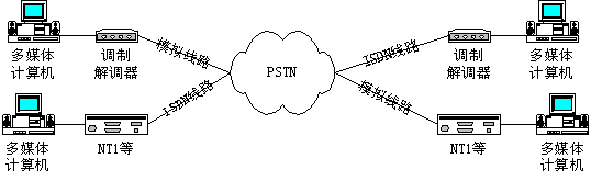 采用ISDN數(shù)字線路時,實現(xiàn)PSTN電話語音方式的連接圖如下: