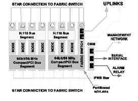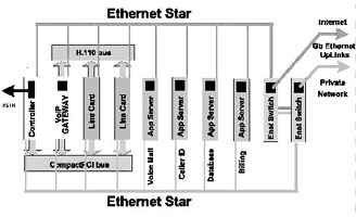 如果我們采用基于CompactPCI標(biāo)準(zhǔn)的刀片服務(wù)器系統(tǒng)來(lái)實(shí)現(xiàn),系統(tǒng)可能就是完全另外一種樣子(如圖1),這樣的實(shí)現(xiàn),首先系統(tǒng)體積小,只要一個(gè)刀片服務(wù)器機(jī)箱;第二,系統(tǒng)基于標(biāo)準(zhǔn)的體系架構(gòu),開(kāi)發(fā)和維護(hù)容易,成本低廉;第三,系統(tǒng)非常好地集成了語(yǔ)音通信和IP通信,易于部署增值電信業(yè)務(wù);第四,系統(tǒng)具有較好的可擴(kuò)展性,因?yàn)楸嘲逄峁┝素S富的帶寬資源,同時(shí)單位空間內(nèi)豐富的插槽,可以安裝更多的服務(wù)器刀片,提供了充足的計(jì)算資源;第五,系統(tǒng)還可以利用各種高可靠性和高可管理性的特點(diǎn)。