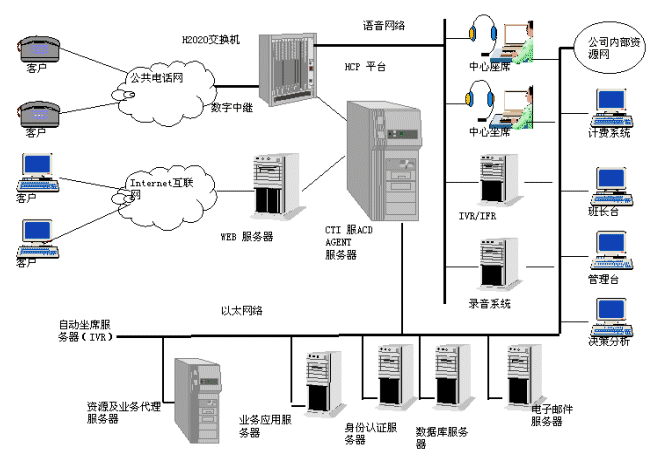 該方案完全以服務為核心,是基于軟件的呼叫中心解決方案,它采用網(wǎng)絡分布式多層對象體系,采取全媒體的接入方式,整合了從尋呼、電話、傳真、短信息到電子郵件、WEB/IP與各種資源,從而形成一個統(tǒng)一的服務平臺。