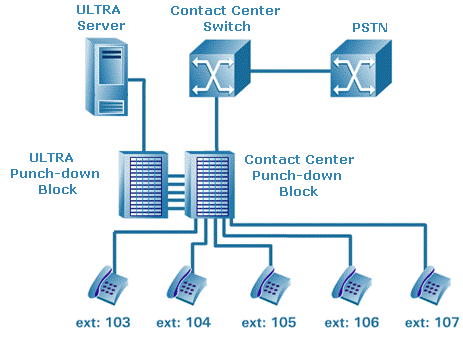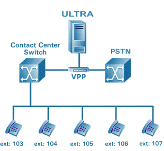 當(dāng)ULTRA不與CTI連接同時不支持信令方式的情況下,ULTRA可以基于VOX方式來部署,通過RTP語音流的偵測。VOX VoIP方案同樣需要靜態(tài)IP地址環(huán)境。
