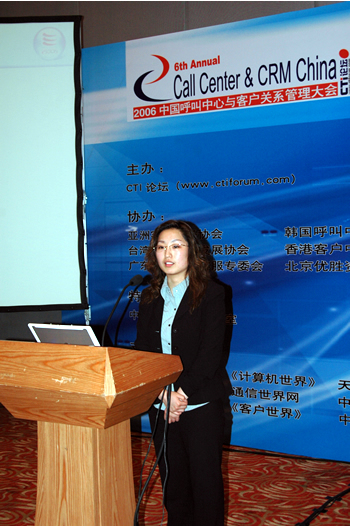 2006年4月3日至5日,2006中國(guó)呼叫中心與客戶關(guān)系管理大會(huì)在北京國(guó)際會(huì)議中心隆重召開(kāi),以下是億迅(中國(guó))最佳商業(yè)模式咨詢顧問(wèn)經(jīng)理孫莉?qū)n}演講實(shí)錄: