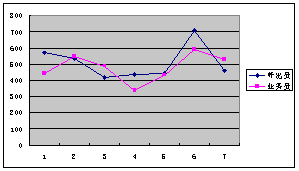 呼出員的訂購次數(shù)和業(yè)務員的訂購次數(shù)變化趨勢基本一樣,7個比較點中,只有一個是業(yè)務員高于呼出員,其余均是呼出員比業(yè)務員高。