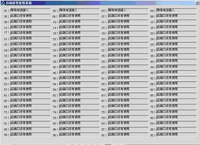| 硬件配置 | 1、自動(dòng)語音應(yīng)答系統(tǒng): PC機(jī)或工控機(jī)(PIII800 CPU/256M內(nèi)存/40G硬盤/)Dialogic模擬語音傳真卡(VFX/40ESC plus) Dialogic 座席卡(MSI/80SC) 2、人工座席系統(tǒng):聯(lián)想中高端商用電腦 3、數(shù)據(jù)庫系統(tǒng):聯(lián)想萬全工作組級(jí)和部門級(jí)服務(wù)器 |