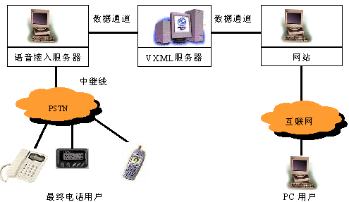 IVIP以VoiceXML為核心技術(shù)。VoiceXML是基于XML的國際標(biāo)準(zhǔn)語音可擴展標(biāo)識語言,它象HTML定義圖形化網(wǎng)頁界面一樣定義了語音界面。