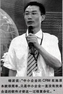 楊波說(shuō):“中小企業(yè)的CRM實(shí)施原本就很簡(jiǎn)單,只是中小企業(yè)一直沒(méi)有找準(zhǔn)合適的軟件才使這一過(guò)程復(fù)雜化。”