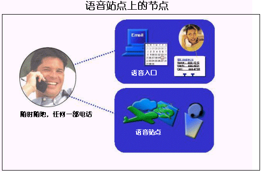 在語音網(wǎng)上,內(nèi)容和服務(wù)將會以兩種方式出現(xiàn)即個人語音站點和語音入口。語音入口和語音站點都屬于網(wǎng)絡(luò)上的節(jié)點,這兩者由一個標(biāo)準(zhǔn)的語音瀏覽器連接起來,關(guān)于這部分內(nèi)容,將在以后進(jìn)行描述。