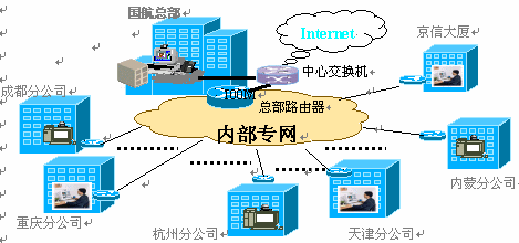 國航營(yíng)銷部需要在已有的網(wǎng)絡(luò)平臺(tái)上,建立一個(gè)能進(jìn)行總部與各分公司之間交互式溝通的環(huán)境,需要一種網(wǎng)絡(luò)多媒體協(xié)同工作的應(yīng)用。