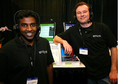 Thambiratnam說(shuō):“當(dāng)多種不同背景的人需要一起交流時(shí),我們的技術(shù)就能提供非常大的便利!盩hambiratnam用同聲傳譯電話展示了這樣一種的情景:Thambiratnam說(shuō)英語(yǔ),他要給他的德國(guó)籍經(jīng)理Frank