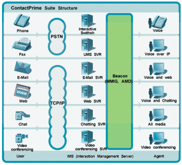 ContactPrime Beacon包含的多媒體交互網(wǎng)關(guān)(MMIG)與自動媒體分配(AMD)提供了在一點之上控制所有形式媒體的功能。它使得你的呼叫中心可以將商業(yè)規(guī)則應(yīng)用到所有的通信通道,并通過統(tǒng)一的軟件平臺與用戶接口執(zhí)行CRM策略。