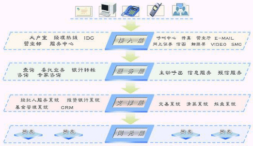 證券客戶服務(wù)系統(tǒng)面向用戶提供電話、傳真、網(wǎng)絡(luò)等方式的咨詢、查詢、委托、銀行轉(zhuǎn)帳、自動業(yè)務(wù)等業(yè)務(wù)功能。系統(tǒng)以提供“個性化、社會化、信息化”服務(wù)為重要特征,具有“滿足未來業(yè)務(wù)發(fā)展需要”、“滿足實時處理”的能力。系統(tǒng)在設(shè)計、實現(xiàn)上,以具有先進(jìn)技術(shù)和高穩(wěn)定性的呼叫中心平臺為基礎(chǔ),竭力為證券業(yè)務(wù)運營商建立一個強大、開放、靈活的業(yè)務(wù)服務(wù)系統(tǒng),更好地滿足證券用戶日益增長的各種新的服務(wù)需求,保持證券企業(yè)在市場競爭中的優(yōu)勢。