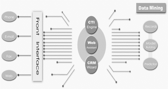 CTI.CRM整合了先進(jìn)的CTI(Computer Telephony Integration)、Call Center 、VoIP、Web、Fax、Email等多種通訊技術(shù),并導(dǎo)入客戶關(guān)系管理(CRM)的最新理論,使企業(yè)在市場(chǎng)行銷,業(yè)務(wù)開拓,及客戶服務(wù)上,均可透過此一整合工具,拓展商機(jī),提升服務(wù)績(jī)效。