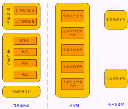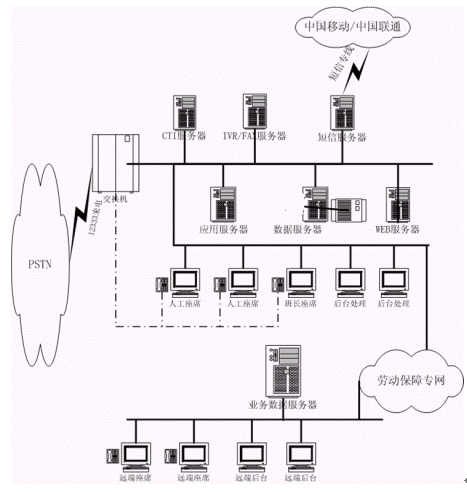 該系統(tǒng)提供5*8小時人工服務(wù)和7*24小時自動服務(wù),提供政策法規(guī)咨詢、辦事指南、信息查詢、受理投訴舉報、進(jìn)行社會調(diào)查五大功能;預(yù)留電話職介和受理勞動保障相關(guān)電話業(yè)務(wù)兩大功能,同時提供輔助功能,包括:資料庫建設(shè),信息定制與發(fā)布,內(nèi)部管理等。